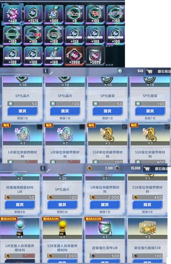 大量SP SSP突破材料未用 數量如圖