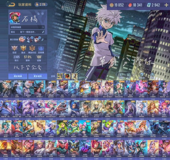 【Garena帳有綁定、先鋒傳說·天際、V7、87英、185造】鶴雨 五條悟 奇牙 彌豆子 剩餘2942點卷 詳細如圖可直下