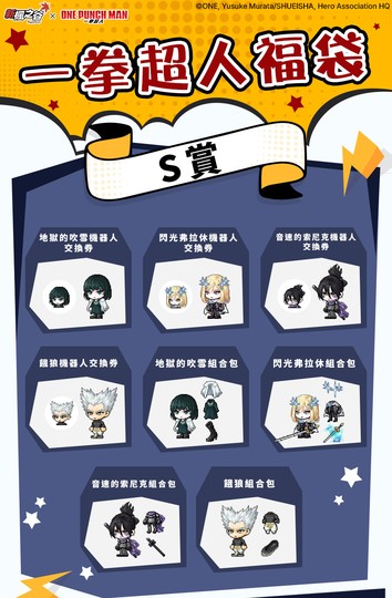 一拳超人福袋序號 S獎 地獄的吹雪組合包/餓狼組合包/閃光佛拉休組合包/機器人