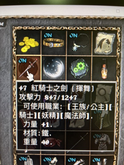 紅騎士之劍,力量+1,全職業通用,王族妖精拿起來嚇嚇叫