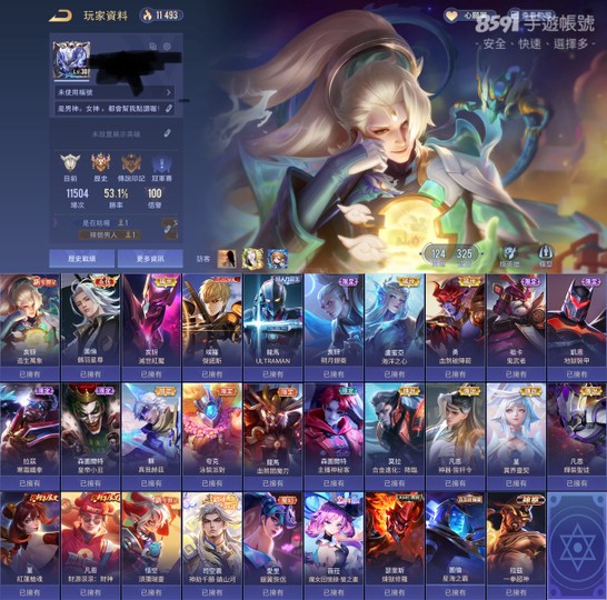 【Garena帳有綁定、鉑金、無VIP、124英、325造】ㄧ手帳號 造生萬象 滅世紅魘亥牙鶴羽星尊圖倫 有合作造型超人力霸王龍馬杰諾斯埃羅