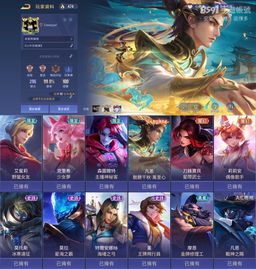 【Garena帳無綁無連、青銅、V2、21英、12造】凡恩新年無無55百勝 找我開專屬