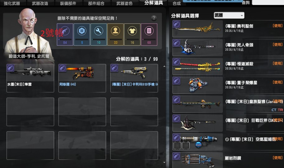 1號帳還有末日武器選擇箱1個