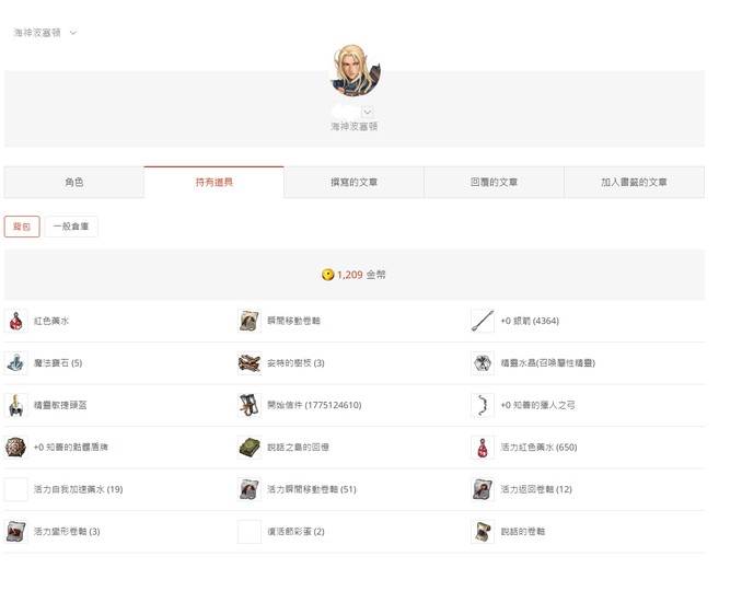物品種類: 帳號