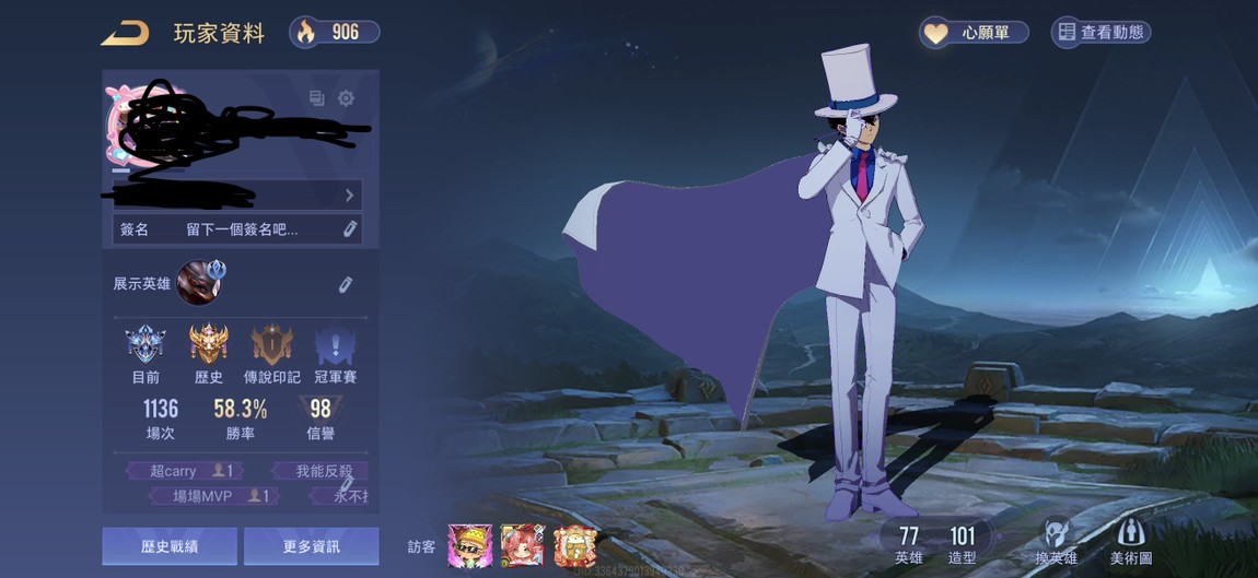 【Garena帳有綁定、鑽石、無VIP、78英、101造】基德主打