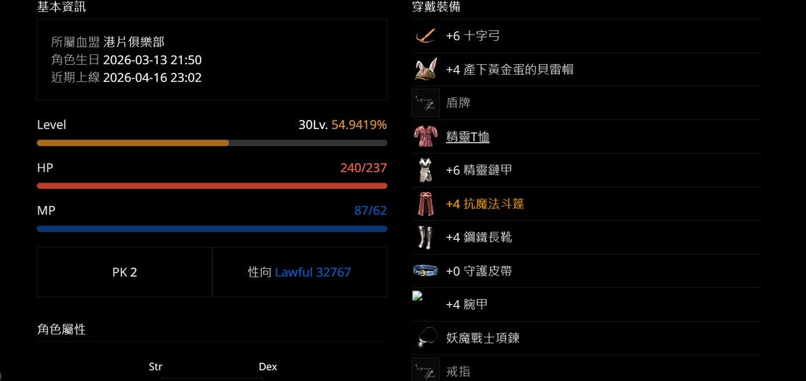 30等智力18 出生妖精~ 1點體 目前大地妖 有萊肯外觀~ 還有沙漏寶相可以開有7個 也不清倉 倉庫 還有防捲 基本五房都滿了 ~ 精靈T雪也滿了 ~ 只是沒鑑定 ~ 狀態放好 防-55 兩之17等杜賓 一之16等