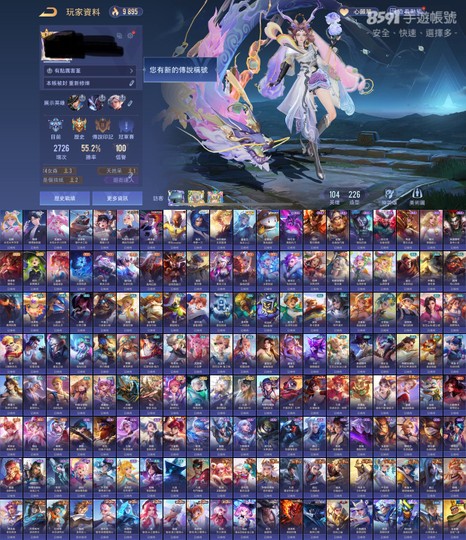 【Garena帳有綁定、青銅、V7、104英、226造】好綁 月亮 蘭鐸禮服 菫龍佑 納克玄冥 多傳說