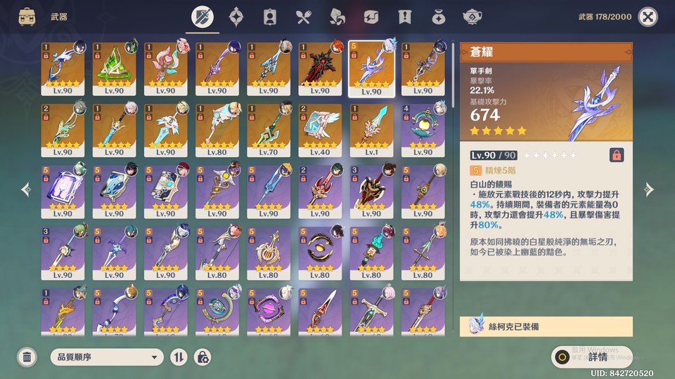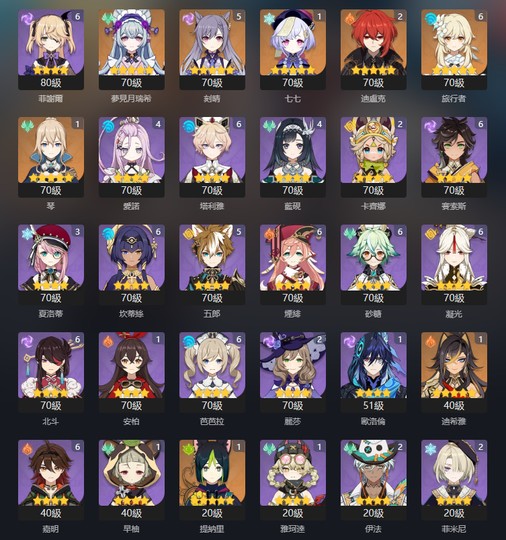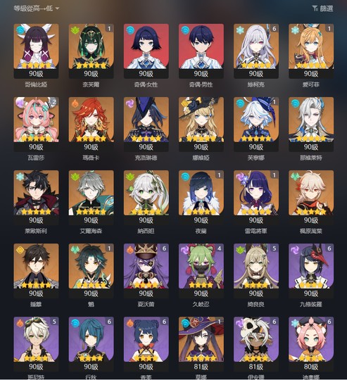 【女、60等、49金角、21金武】滿命滿精絲柯克6+5 一命愛可菲芙寧娜 瓦雷莎21 奈芙爾11 其餘看圖和內文