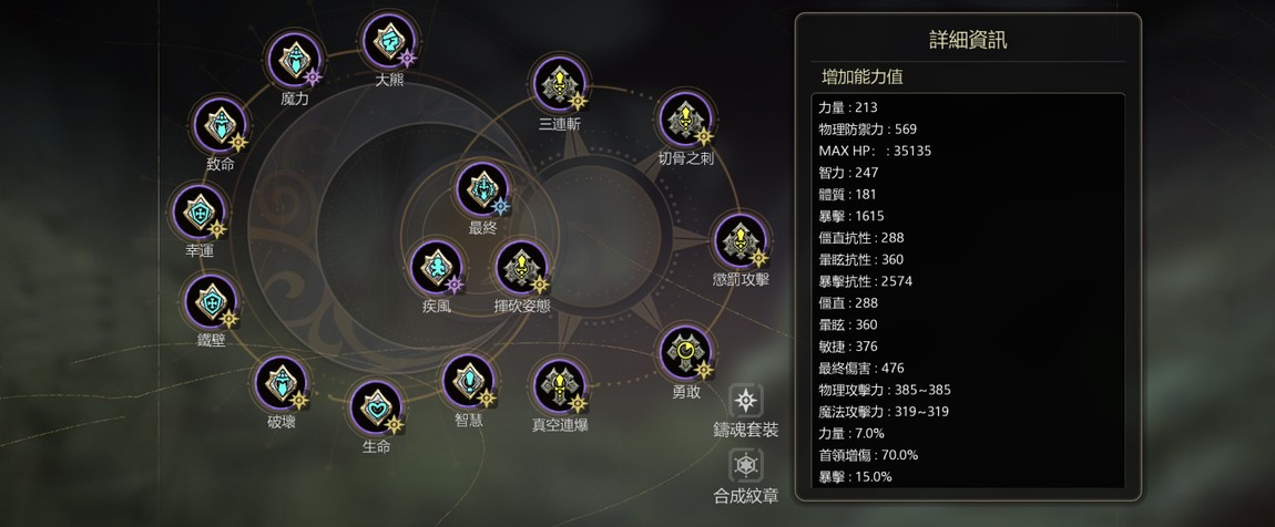 致命、破壞、魔力、幸運、森嚴、熊、拔刀