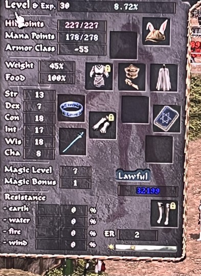 【30等、法師】30級 體精18智16 法師 有神走冥想體魄 水晶魔杖智書