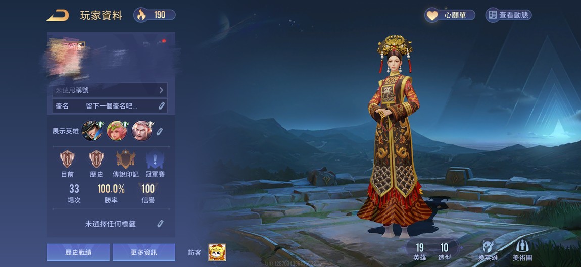 【Garena帳無綁無連、青銅、V1、19英、10造】百勝33場100% 瑪迦熹妃 還有801點卷