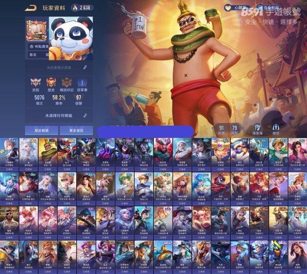 【Garena帳有綁定、永恆傳說、V1、91英、79造】高勝多場次多英雄歷史永恆