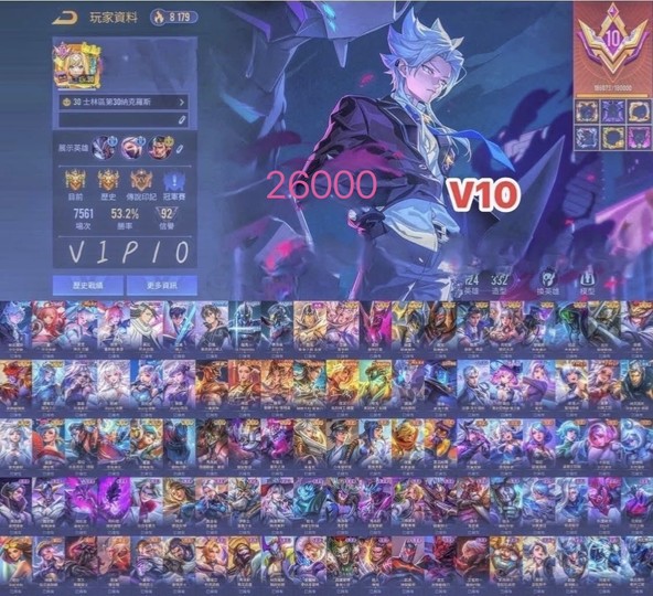 【Garena帳有綁定、先鋒傳說·星域、V10、124英、332造】V10