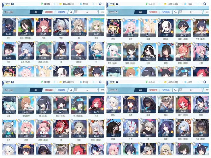 碧藍檔案日服賬號,175角色,限定聯動齊全,有初音未來,超炮聯動,強力角色多,升級材料多