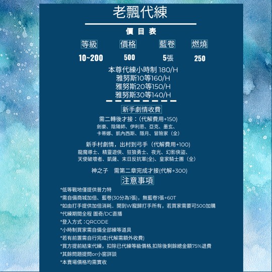 5.代練期間全程DC/YT直播,帳號登入方式:掃QR。
