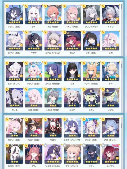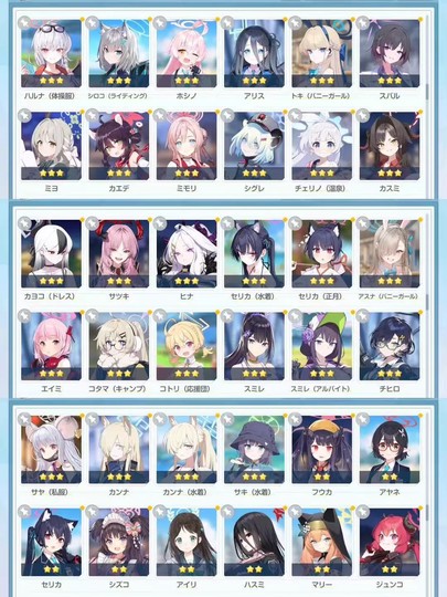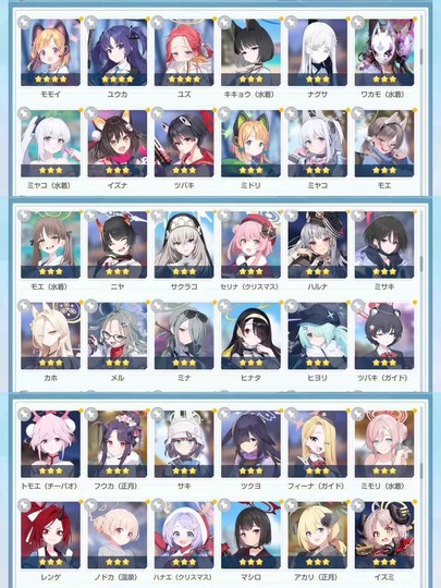 限定角色:臨戰日鞠 臨戰莉音 體服優香 體服瑪麗 時 水泉奈 水梓 禮服亞子 光 望 正月風香