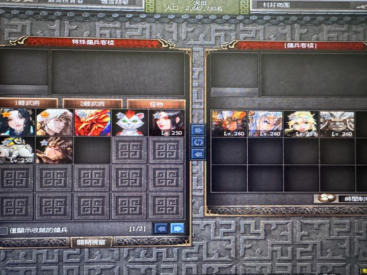 雷:朱蒙LV236,花木蘭LV253(+5傳說弓),萬善爺LV238