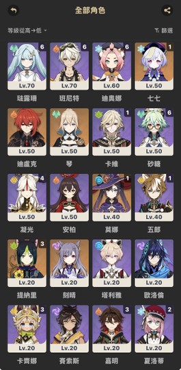 【男、57等、20金角、6金武】原神+崩壞星穹鐵道