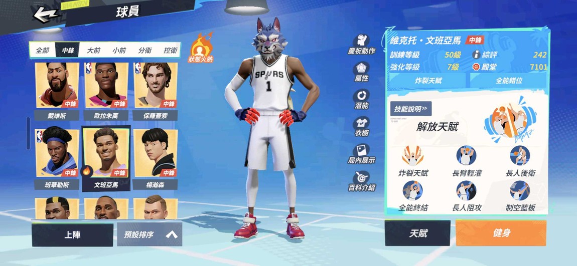 文班亞馬、大班、馬龍、楊尼斯(100%重置)