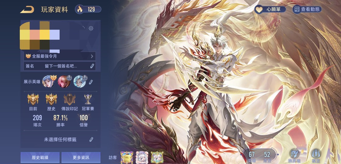 【Garena帳有綁定、絕世傳說、V7、68英、53造】超高勝百星雙冠王 全服令月 文鰩 比洛新年 若伊新年 颯枷耀光 馬迦熹妃