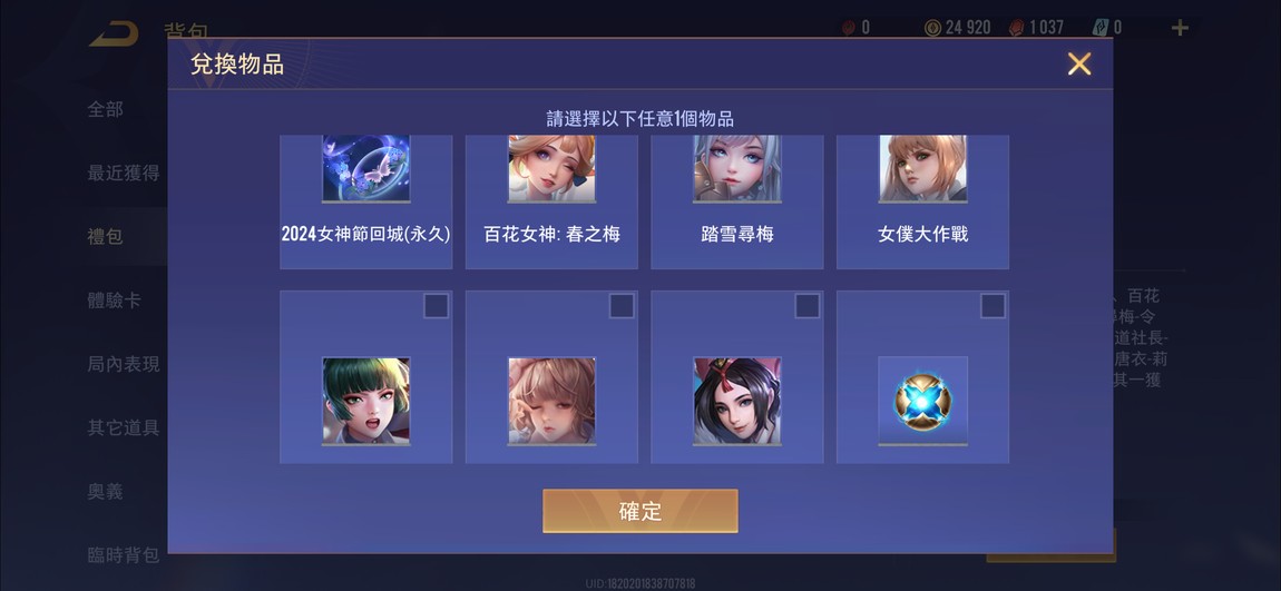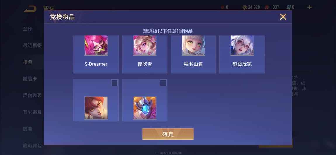 物品種類: 帳號