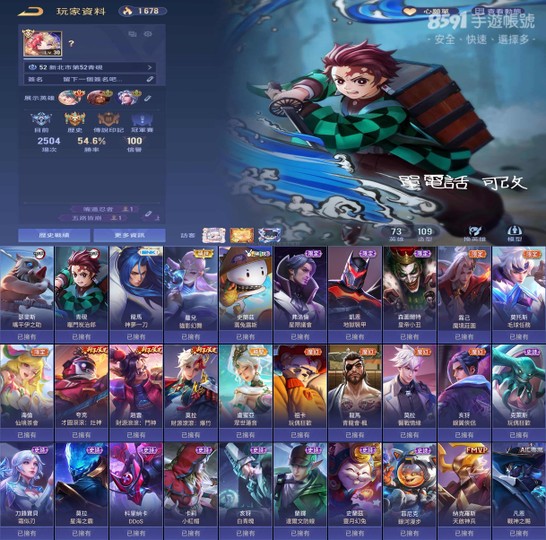 【Garena帳有綁定、先鋒傳說·光影、V6、73英、109造】紅標炭治郎 星際 貓影 絕版森圖小丑 多盛典造