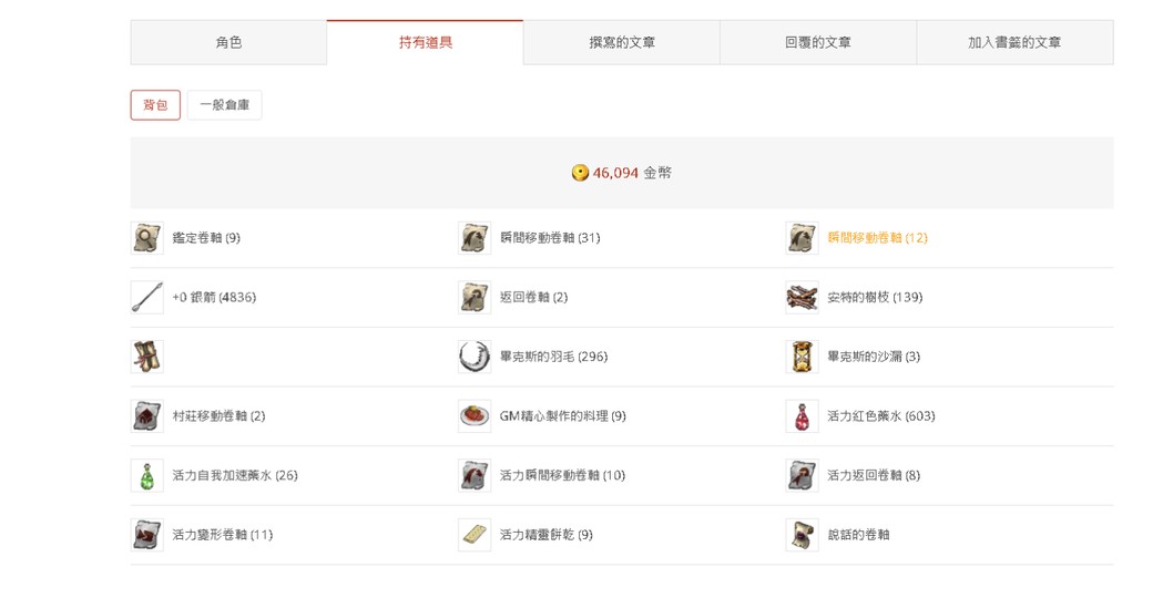 空裝血魔如圖1,身上裝備圖2安定裝而已,身上倉庫沒什麼東西,沙漏今天會吃掉。