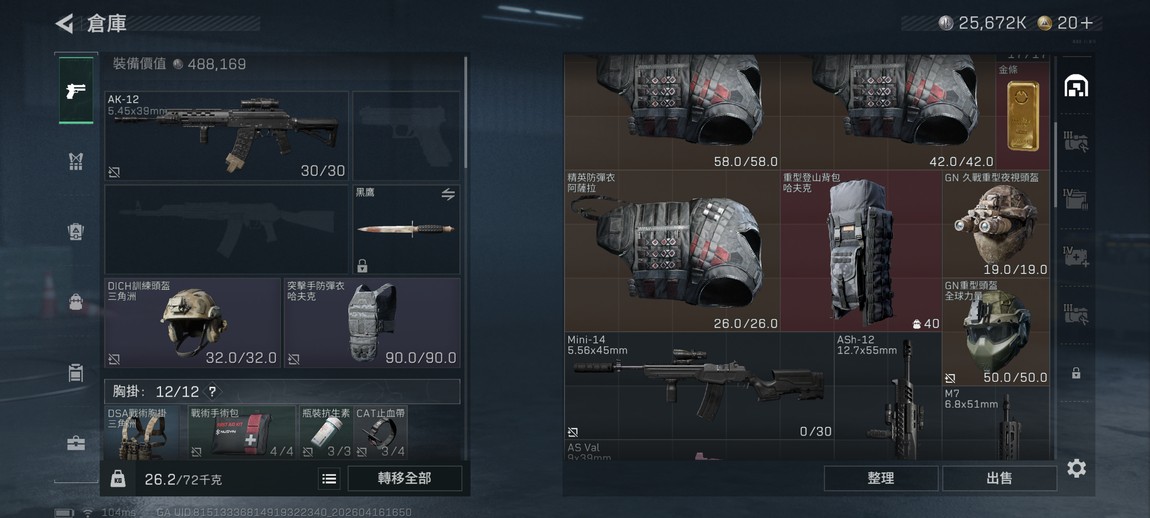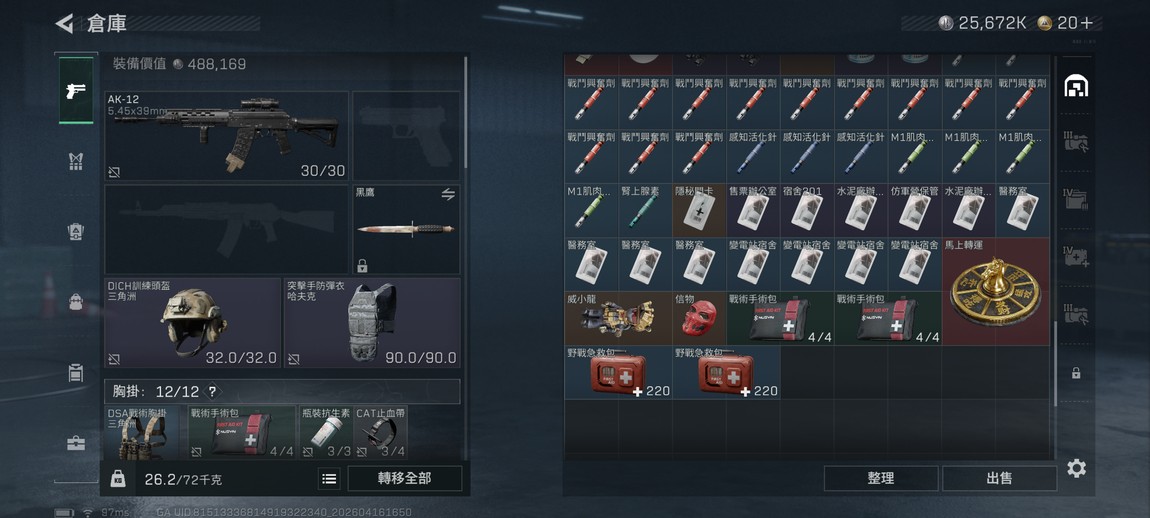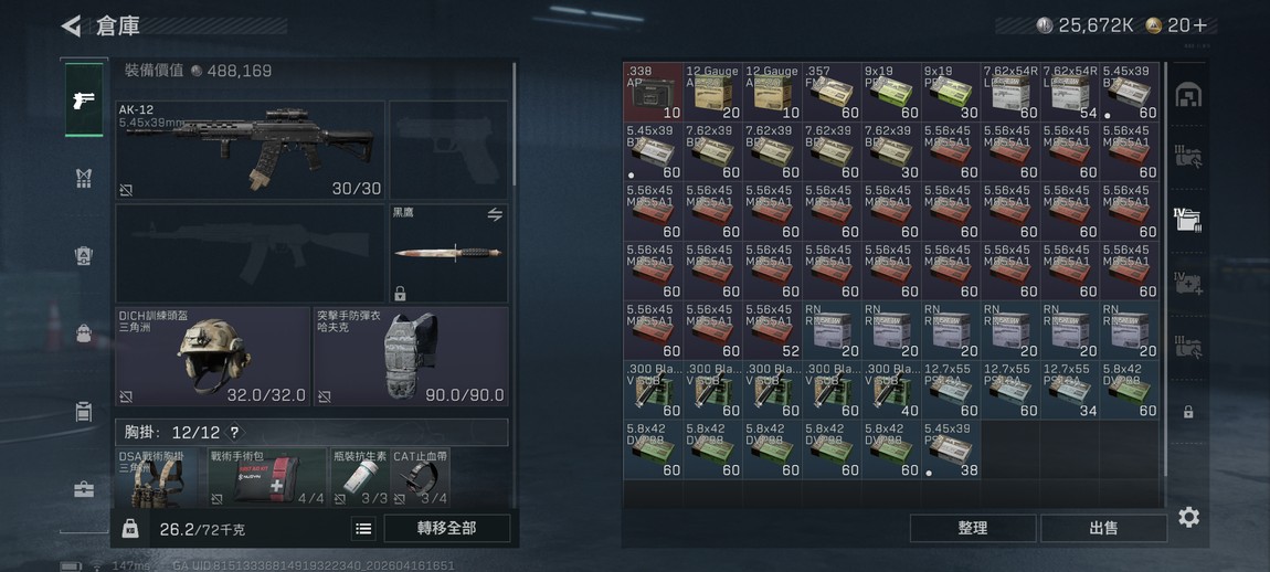 頂級戰備: 5 級甲、紅包、海量5.56 M855A1 紫階彈藥。