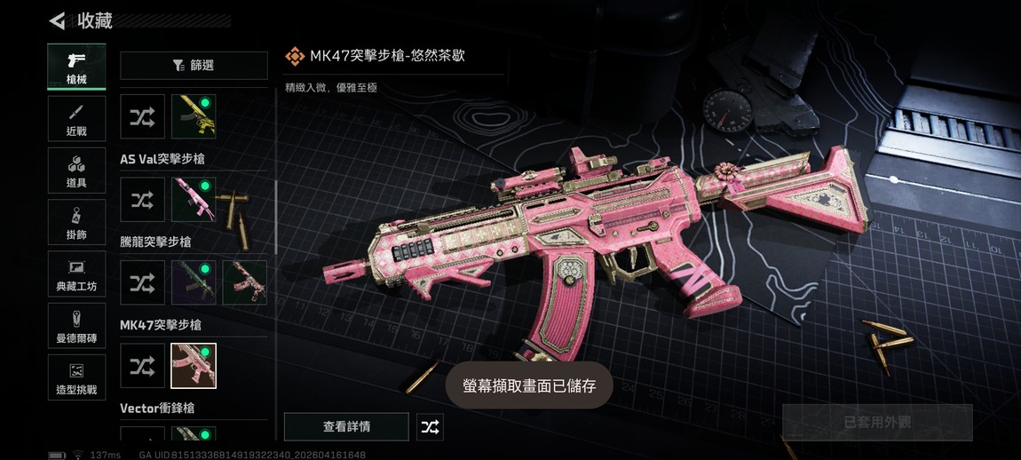 成套美學: 悠然茶歇三件套(AUG、MK47、UZI)粉金頂級質感。