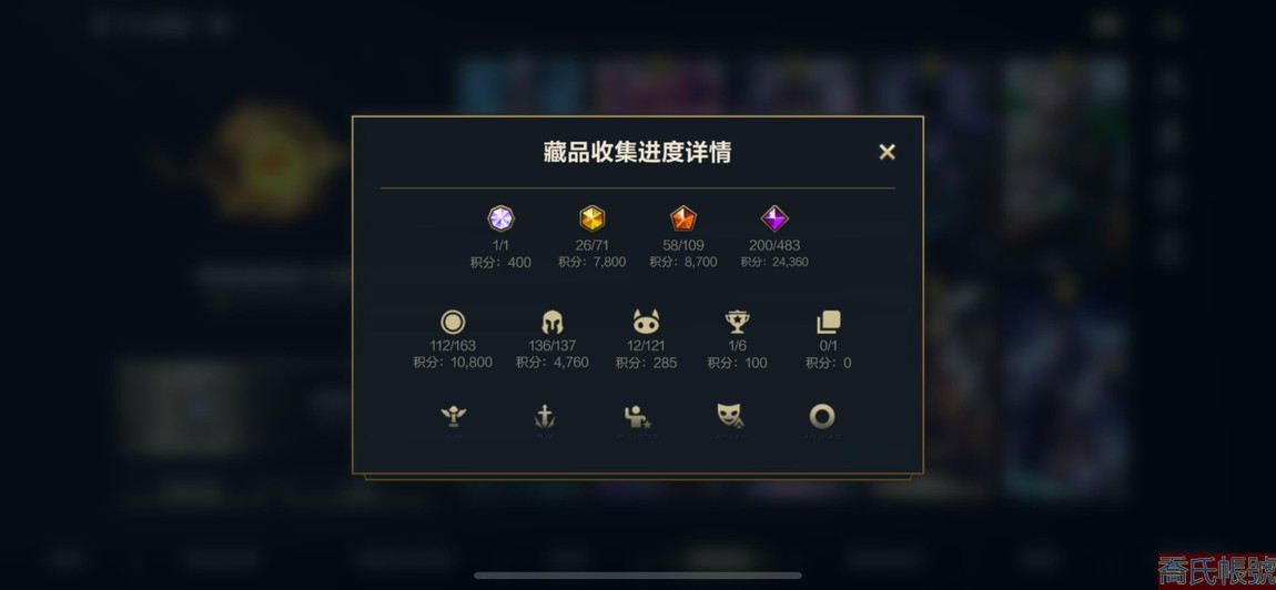 【11等】段位:超凡大師,皮膚總數:397,終極皮膚:尋道世尊永恩;典藏皮膚:超武乾坤孤