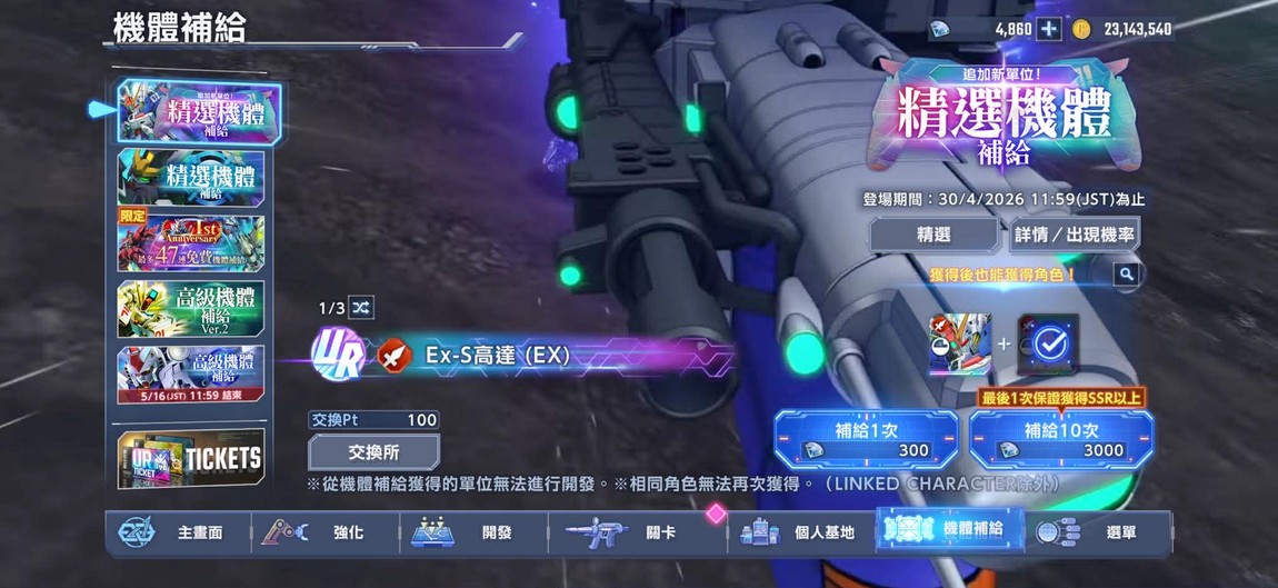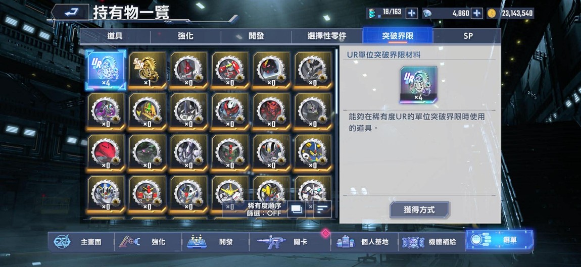 有4個UR機件未用 兩部限艦(最新未來最強三星疾風TAG/新人類/堅固/強敵/王牌)