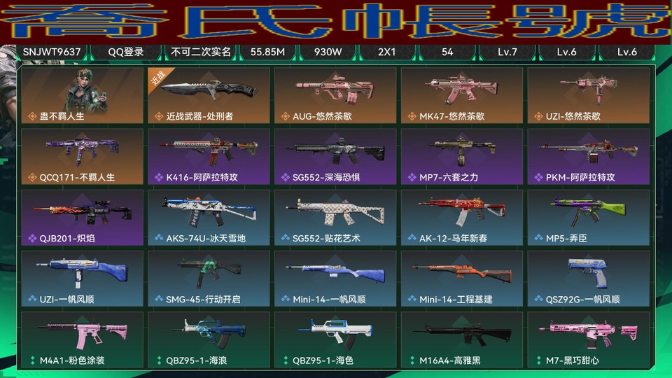 【多帳號賣場】總資產:55.85M,哈夫幣:930W,傳說武器5,史詩武器5,武器皮膚43;