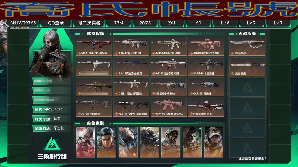 【多帳號賣場】總資產:77M,哈夫幣:209W,武器皮膚:118,烽火60級:戰場50級:基