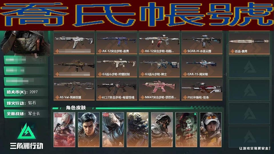 【OBSNJWT976542】總資產:77M,哈夫幣:209W,武器皮膚:118,烽火60級:戰場50級:【安全箱】基礎安全箱;【特勤處等級】倉庫LV.8,靶場LV.7,訓練中心LV.7;【幹員皮膚】駭爪維什戴爾,威龍飛虎,蜂醫送葬人無題密令,無名夜鷹,深藍不破誓約,紅狼電鋸驚魂,露娜金牌射手,烏魯魯荒原獵手,蠱不羈人生;【近戰武器】近戰武器-信條,近戰武器-黑鷹;【步槍皮膚】M4A1突擊步槍-阿米婭,ASh-12戰鬥步槍-鵝鴨殺,M16A4突擊步槍-狩獵時刻,AUG突擊步槍-悠然茶歇,SG552突擊步槍-運動員,AK-12突擊步槍-夜鷹,AK-12突擊步槍-特斯拉線圈,SCAR-H戰鬥步槍-水墨雲圖,SCAR-H戰鬥步槍-啟航,G3戰鬥步槍-狩獵時刻,G3戰鬥步槍-騎士,CAR-15突擊步槍-阿米婭,ASVal突擊步槍-死神玫瑰,KC17突擊步槍-電鋸驚魂,MK47突擊步槍-悠然茶歇,SR-25射手步槍-水墨雲圖,KC17突擊步槍-碎冰行動,AKM突擊步槍-林中獵手,QBZ95-1突擊步槍-曙光,QBZ95-1突擊步槍-競技風,ASh-12戰鬥步槍-守夜人,ASh-12戰鬥步槍-無極限,K416突擊步槍-冬日風情,K416突擊步槍-臘梅,K416突擊步槍-阿薩拉特攻,M16A4突擊步槍-競賽選手,AUG突擊步槍-蝮蛇,AUG突擊步槍-致命奢華,M7戰鬥步槍-百步穿楊,SG552突擊步槍-尖端治療,SG552突擊步槍-深海恐懼,SG552突擊步槍-哈夫克警備,SCAR-H戰鬥步槍-囚徒,G3戰鬥步槍-戰場英傑,G3戰鬥步槍-流沙送葬,G3戰鬥步槍-哈夫克警備,PTR-32突擊步槍-工業狂潮,ASVal突擊步槍-刀鋒,ASVal突擊步槍-尖端治療,ASVal突擊步槍-典獄官,ASVal突擊步槍-百步穿楊,騰龍突擊步槍-無垢,騰龍突擊步槍-致命奢華,騰龍突擊步槍-獵鱷行動,K437突擊步槍-守護者,K437突擊步槍-叢影諜蹤,PTR-32突擊步槍-英雄;【衝鋒槍皮膚】P90衝鋒槍-信條,Vector衝鋒槍-狩獵時刻,UZI衝鋒槍-特斯拉線圈,UZI衝鋒槍-悠然茶歇,SMG-45衝鋒槍-騎士,SR-3M緊湊突擊步槍-特斯拉線圈,勇士衝鋒槍-能天使-午夜郵差,QCQ171衝鋒槍-鵝鴨殺,QCQ171衝鋒槍-不羈人生,MP5衝鋒槍-深海恐懼,MP5衝鋒槍-戰術競備,MP5衝鋒槍-競技風,P90衝鋒槍-暗夜獵手,P90衝鋒槍-緊急戒備,Vector衝鋒槍-阿薩拉文明,Vector衝鋒槍-獵鱷行動,Vector衝鋒槍-致命奢華,Vector衝鋒槍-百步穿楊,SMG-45衝鋒槍-阿薩拉特攻,SR-3M緊湊突擊步槍-英雄,SR-3M緊湊突擊步槍-荒野求生,SR-3M緊湊突擊步槍-戰術競備,SR-3M緊湊突擊步槍-開工大吉,勇士衝鋒槍-深海恐懼,勇士衝鋒槍-工業狂潮,勇士衝鋒槍-叢影諜蹤,MP7衝鋒槍-無垢,MP7衝鋒槍-守護者,MP7衝鋒槍-六套之力;【射手步槍皮膚】SKS射手步槍-騎士,SR-25射手步槍-信條,Mini-14射手步槍-守護者,VSS射手步槍-叢影諜蹤,SVD狙擊步槍-阿薩拉工藝,SVD狙擊步槍-暗夜獵手,SVD狙擊步槍-荒野求生,M14射手步槍-禁衛,SR-25射手步槍-戰場英傑,SR-25射手步槍-尖端治療,PSG-1射手步槍-無垢;【狙擊步槍皮膚】R93狙擊步槍-維什戴爾,SV-98狙擊步槍-林中獵手,SV-98狙擊步槍-囚徒,SV-98狙擊步槍-獵鱷行動,R93狙擊步槍-競賽選手,M700狙擊步槍-競技風,M700狙擊步槍-蝮蛇,M700狙擊步槍-守夜人,M700狙擊步槍-百步穿楊,M700狙擊步槍-哈夫克警備,AWM狙擊步槍-無極限,AWM狙擊步槍-流沙送葬;【霰彈槍皮膚】725雙管霰彈槍-送葬人-無題密令,M1014霰彈槍-林中獵手,S12K霰彈槍-曙光;【輕機槍皮膚】M250通用機槍-騎士之心,QJB201輕機槍-鵝鴨殺,PKM通用機槍-蝮蛇,PKM通用機槍-守夜人,PKM通用機槍-荒野求生,M249輕機槍-叢影諜蹤,M250通用機槍-囚徒,QJB201輕機槍-OldHabits,PKM通用機槍-英雄;【手槍皮膚】G18-飛虎,QSZ92G-風林火山,.357左輪-幸運時刻,沙漠之鷹-曙光,93R-博士;【特殊武器】復合弓-守護者;【掛飾】黑夜獵手,餘燼之影,緊急撤離;(資訊源於賣家釋出,實際資訊以驗號為準)【QQ登入】【可二次實名】【自主截圖】77m總資產-2097k哈夫幣-60烽火等級-鑽石-50戰場等級-軍士長 【幹員外觀】:駭爪-維什戴爾,威龍-飛虎,蜂醫-送葬人·無題密令,無名-夜鷹,深藍-不破誓約,紅狼-電鋸驚魂,露娜-金牌射手,烏魯魯-荒原獵手,蠱-不羈人生 【近戰皮膚】:近戰-信條,近戰-黑鷹 【傳說外觀】:M4A1突擊步槍-阿米婭,ASh-12戰鬥步槍-鵝鴨殺,M16A4突擊步槍-狩獵時刻,AUG突擊步槍-悠然茶歇,
