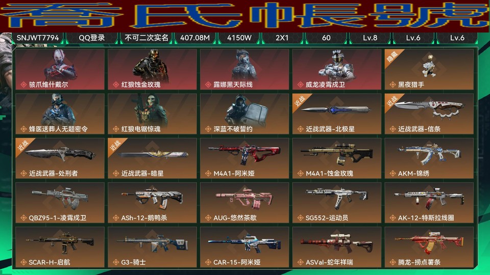 【多帳號賣場】總資產:407.08M,哈夫幣:4150W,傳說武器47,史詩武器47,武器皮