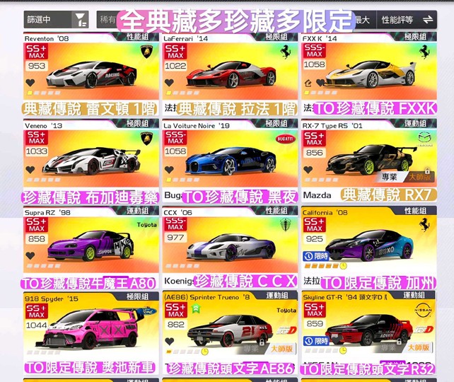 此號都有專人用心解零件材料 跟所有大小任務包括俱樂部賽事 計分車組幾乎都已滿改裝 不怕進去沒零件即使有車也沒辦法馬上上分 大順風開局 典藏珍藏齊全