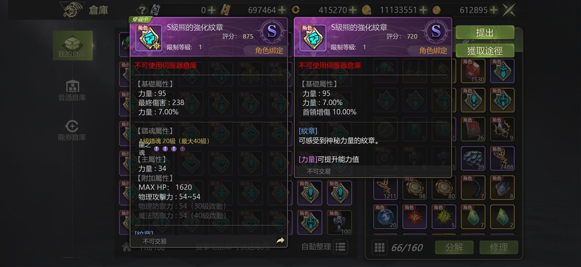 如圖,有大量紋章可以調整首領/爆傷/終傷,4個無雙