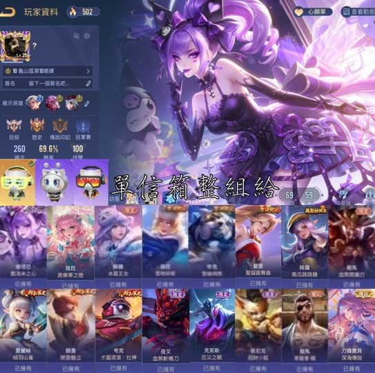 【Garena帳有綁定、璀璨傳說、V6、69英、59造】單信箱 歷史璀璨 酷洛米 王女 聖誕 跳跳糖 血殺 深海 新年 金元寶