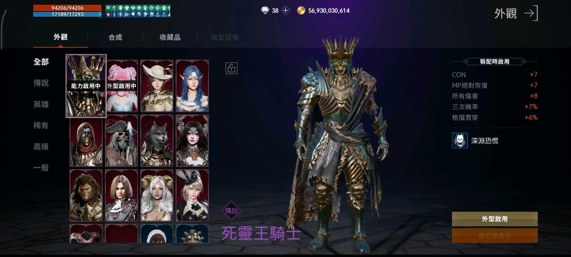 +8殷海薩、+0白星、+7祝勇猛面甲、+6祝護頸、+4懷錶