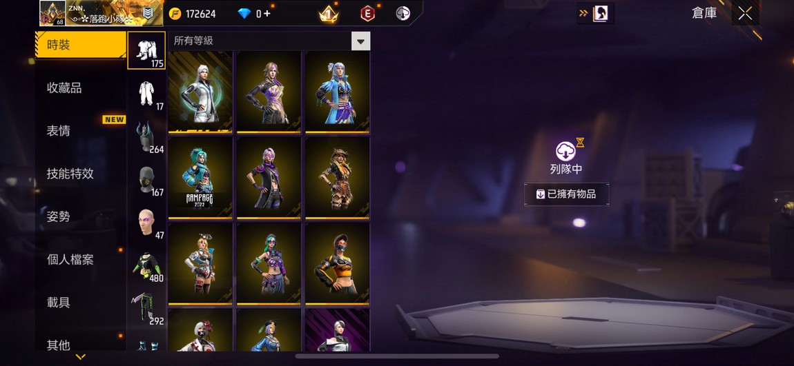 有興趣歡迎私聊 只綁電子郵件跟google 整組google帳號給你 服裝480 套裝170 塗裝489 紅2 金93 紫113