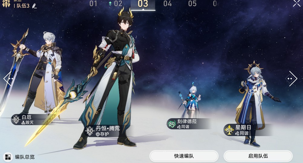 0命 : 飛霄、托帕、砂金、真理、白堊、刻律、昔漣、長夜月、風堇、忘歸人、阮梅、盾丹、刃、雲璃