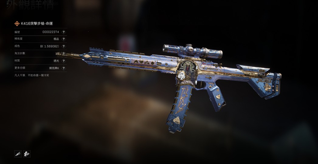 S4槍皮:極品B:K416 國王藍色槍身黃色呼吸燈 已賣出