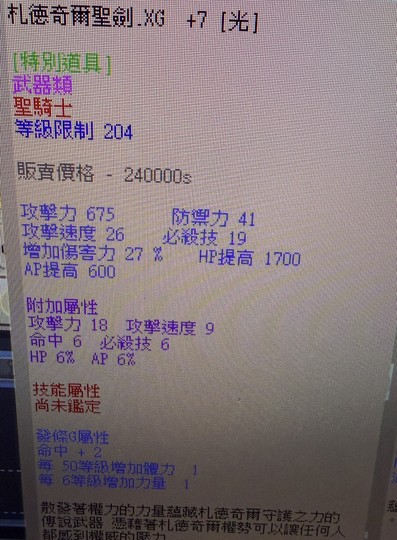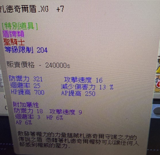 札德奇爾聖盾+聖劍XG+7大官屬內詳(新手回鍋,聖騎士)