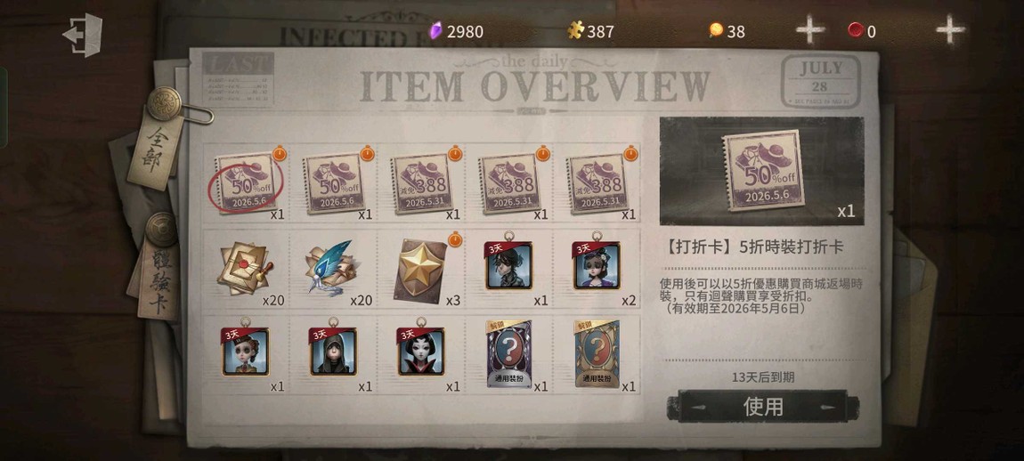 物品種類: 帳號