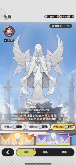普通祈願:380抽 / 高階祈願:110抽 / 技能兌換卷:12張