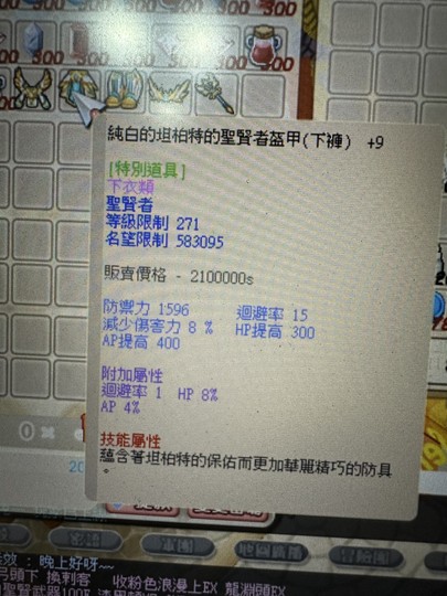 聖賢純白套+9(含武器)(32HP.44智)