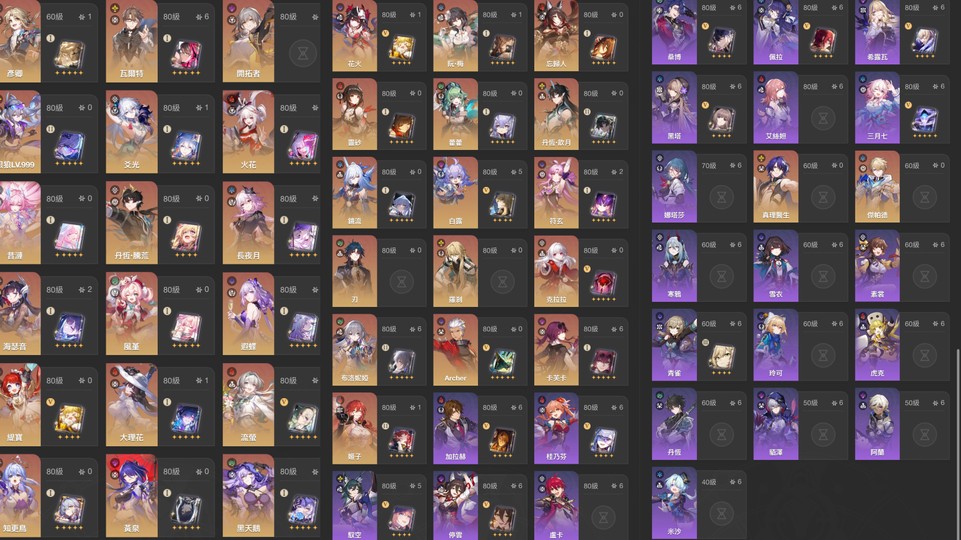 新增:銀狼lv999 0+2 霍霍0+0 商品如圖 高練度(隨便亂殺!) 14專票 4服裝(阮梅/流螢/三月七/遐蝶) 滿命:流螢6+5 卡夫卡6+1 布洛妮婭6+1瓦爾特6+1 5命:白露 2命:火花 海瑟音 黑天鵝 符玄 1命:彥卿 爻光 大理花 阮梅 姬子 限定角色池:0/90小保 限定光錐池:0/80小保 月卡149天 用戶名已設/生日已設 綁gmail整組移交