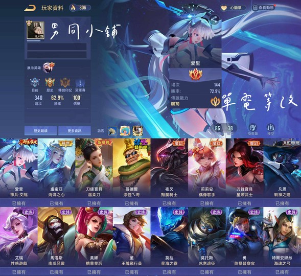 【Garena帳有綁定、先鋒傳說·光影、V7、86英、38造】高勝率文瑤簡 5000實收