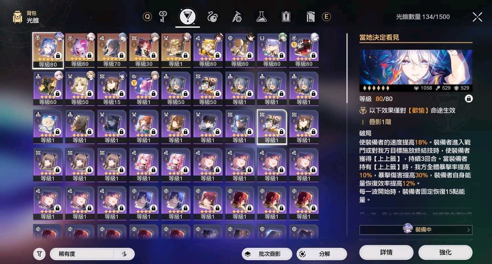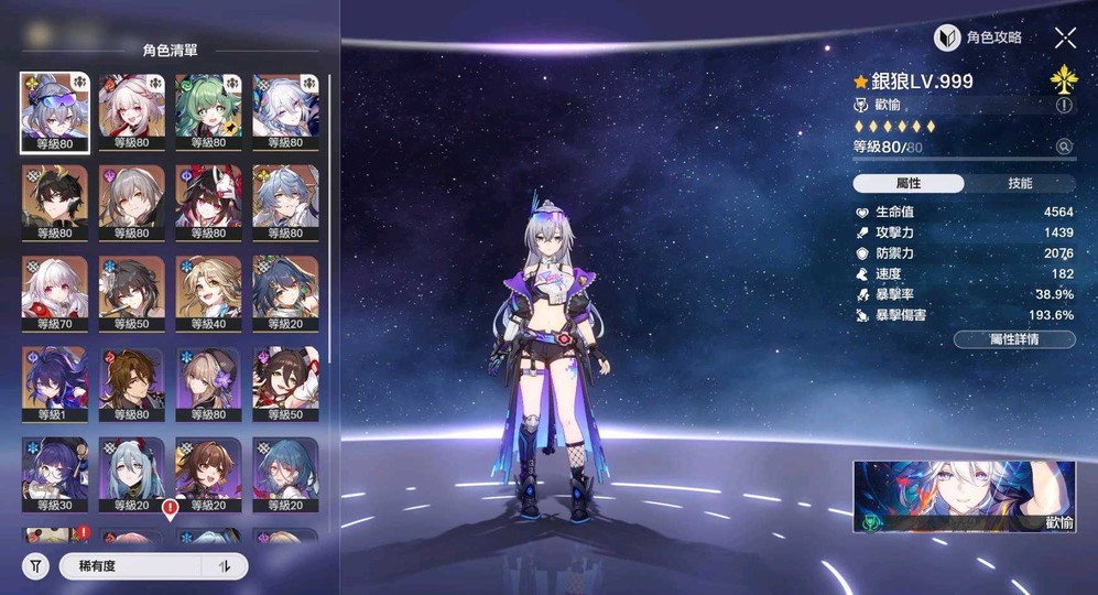 火花01 爻光01 霍霍00 騰荒00 花火00 星期日00 克拉拉10 阮梅00(有照型) 彥卿00 雲璃00 希兒00