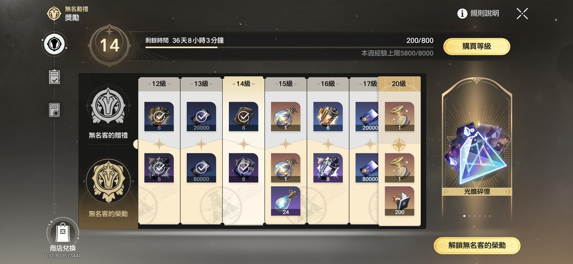 【女、70等、37金角、37金專】崩鐵帳號不簡
